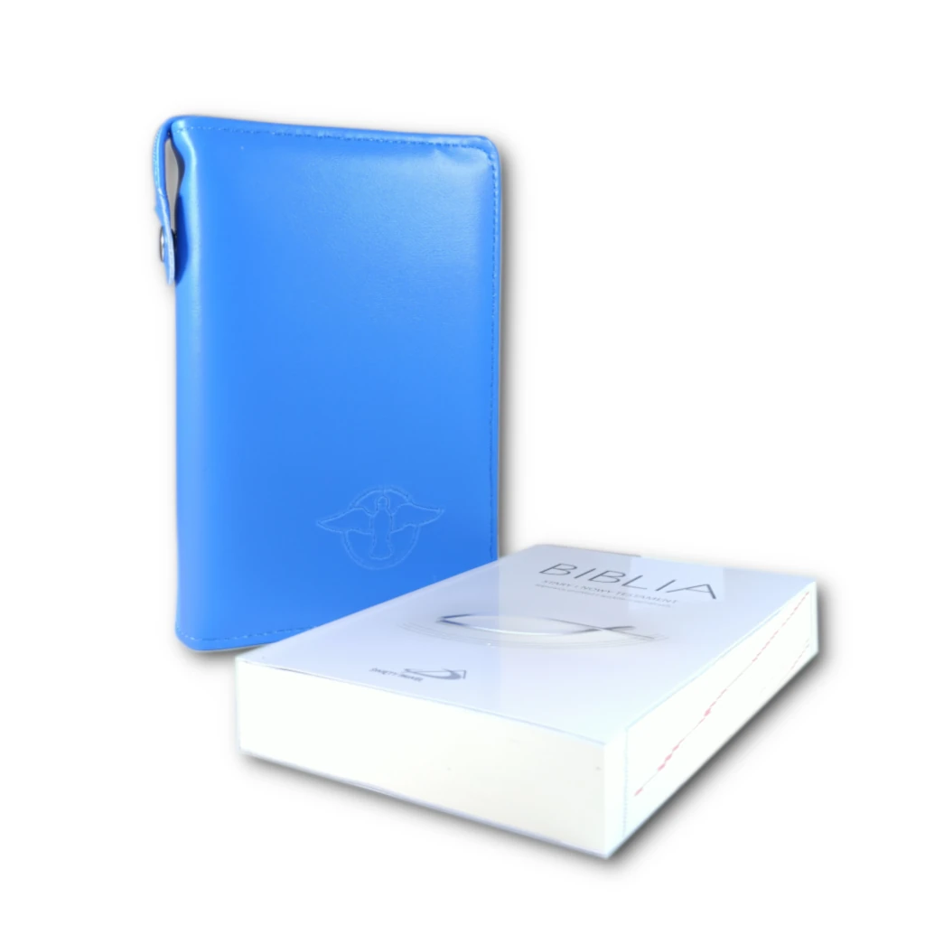 Dołączona do Biblii oprawa z niebieskiego skaju pozwoli zachować Pismo Święte w perfekcyjnym stanie przez lata!