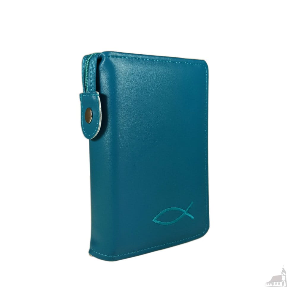 Biblia tysiąclecia, format oazowy, paginowana w Etui turkusowym z haftem.