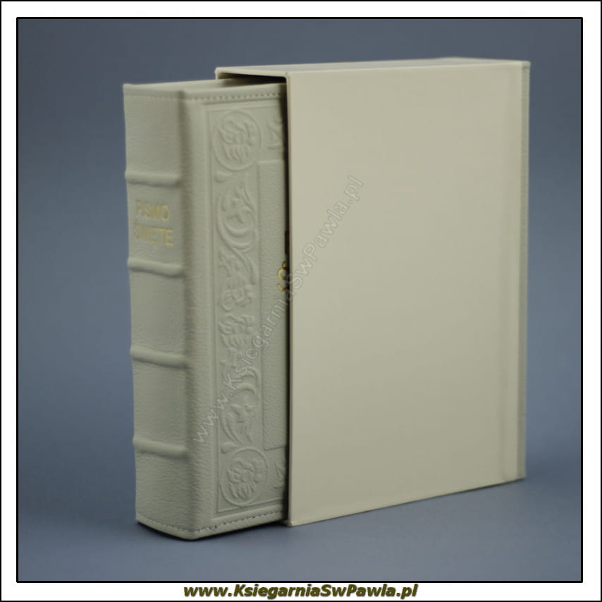 Biblia Tysiąclecia to bardzo praktyczne, poręczne pełne wydanie Pisma Świętego Starego i Nowego Testamentu w formacie 15x23cm, V wydanie, oprawa twarda, skóra w kolorze Ecru, przypisy, tabele chronologiczne, mapy, słownik biblijny. Wydanie paginowane.