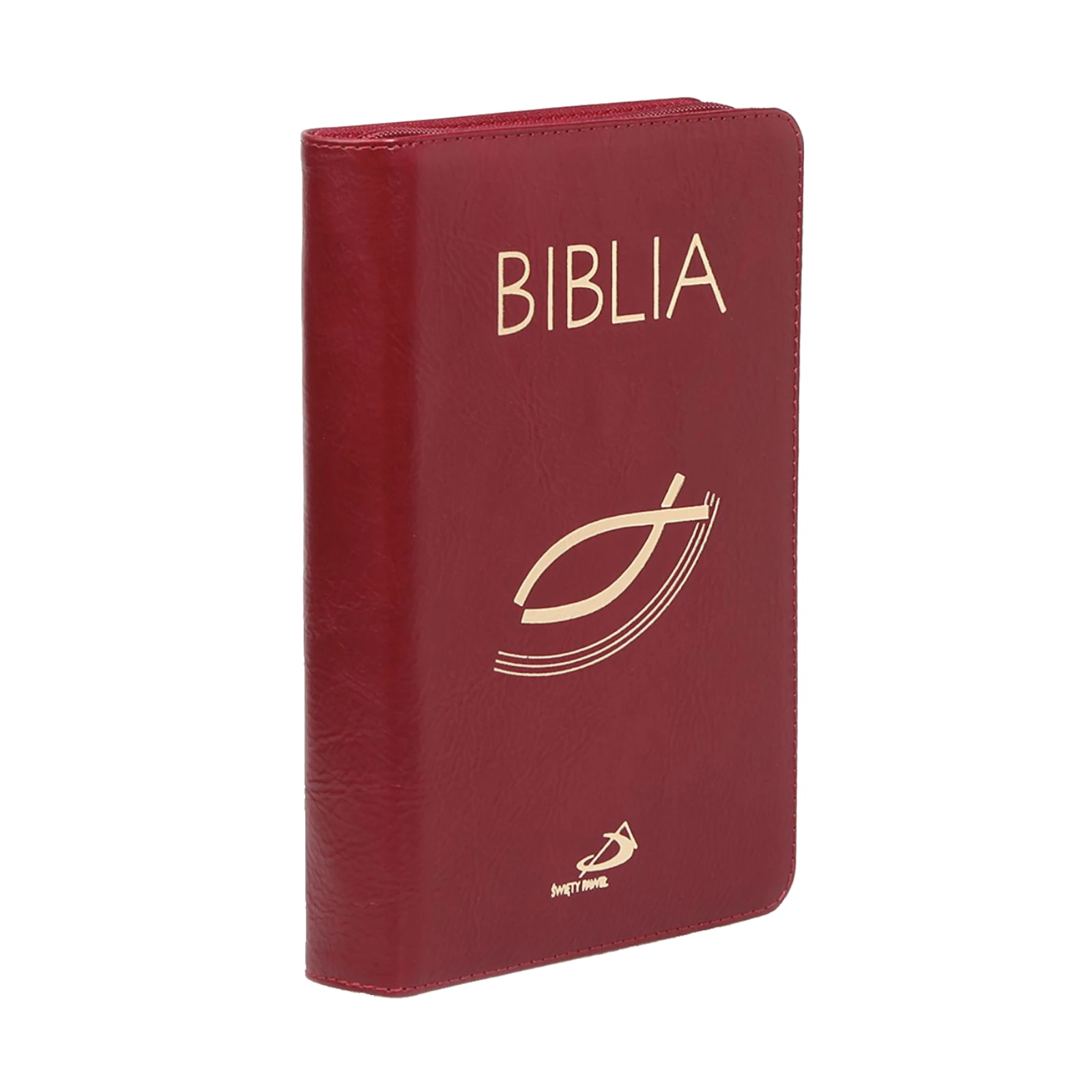Biblia "z rybką" - oprawa skóra naturalna z suwakiem, bordowa, z paginatorami