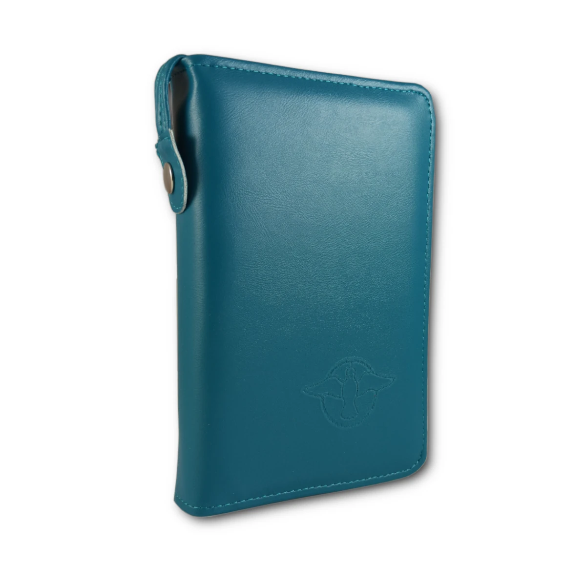 Eleganckie etui przeznaczone na Pismo Święte Edycja Św. Pawła. Etui wykonane z wysokogatunkowego skaju w kolorze turkusowym.