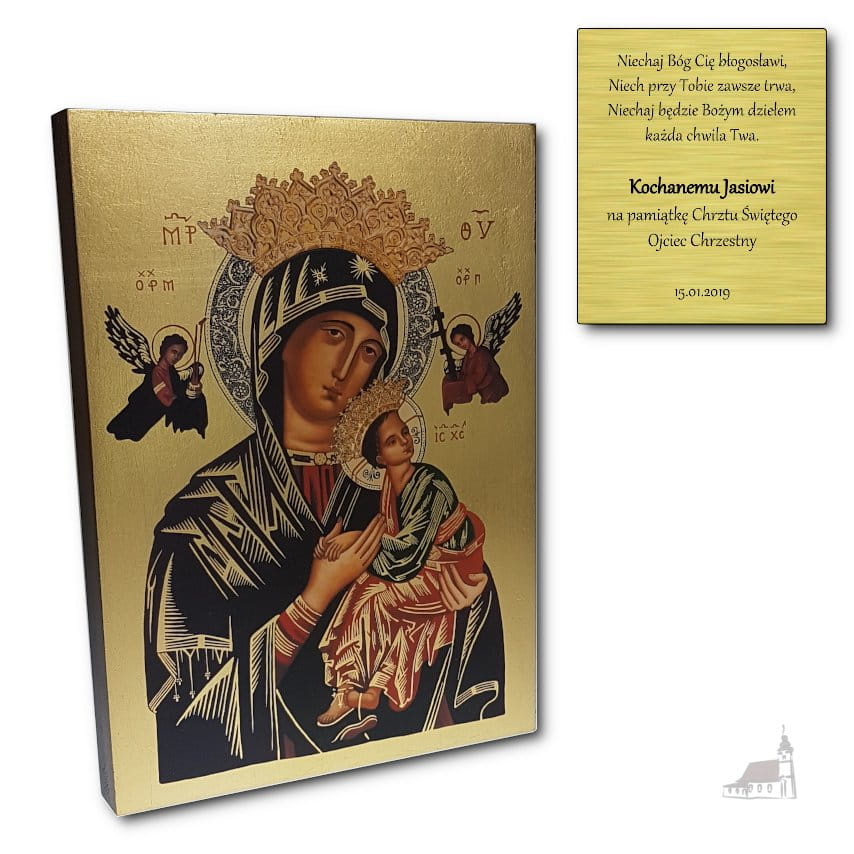 Istnieje możliwość wykonania dedykacji w postaci graweru na płytce naklejanej na odwrocie Ikony.