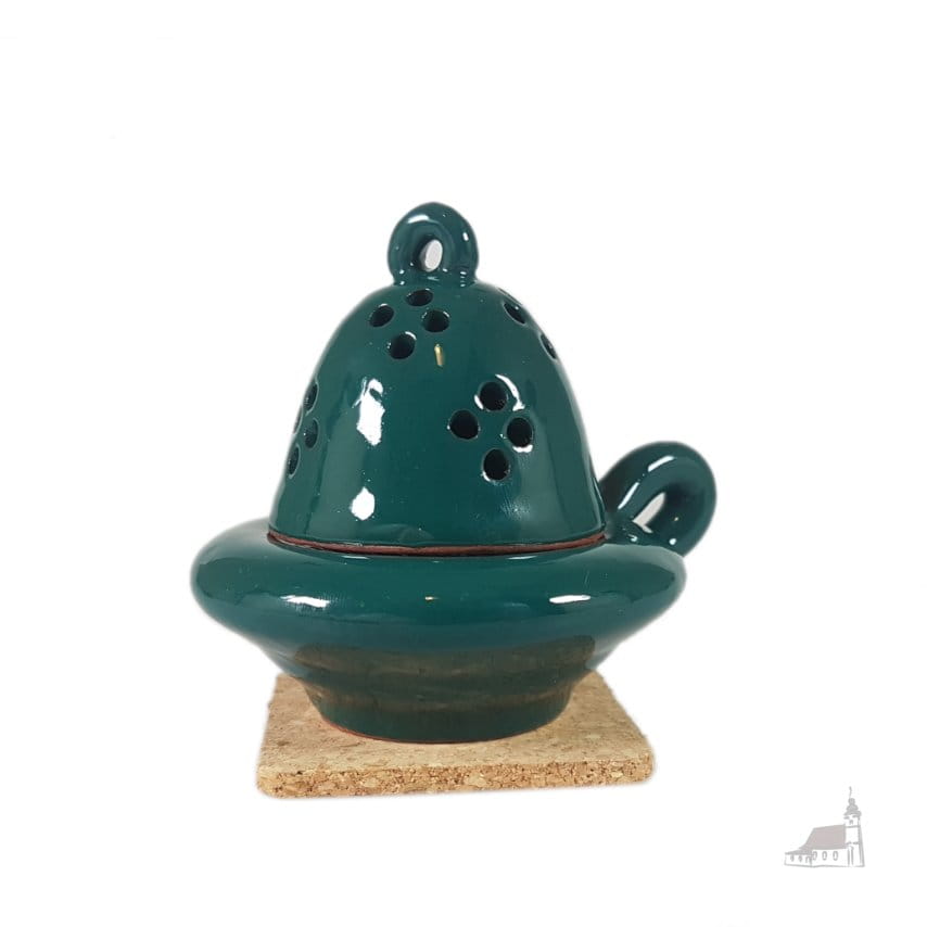 Gliniana kadzielniczka glazurowana. Kolor zielony.