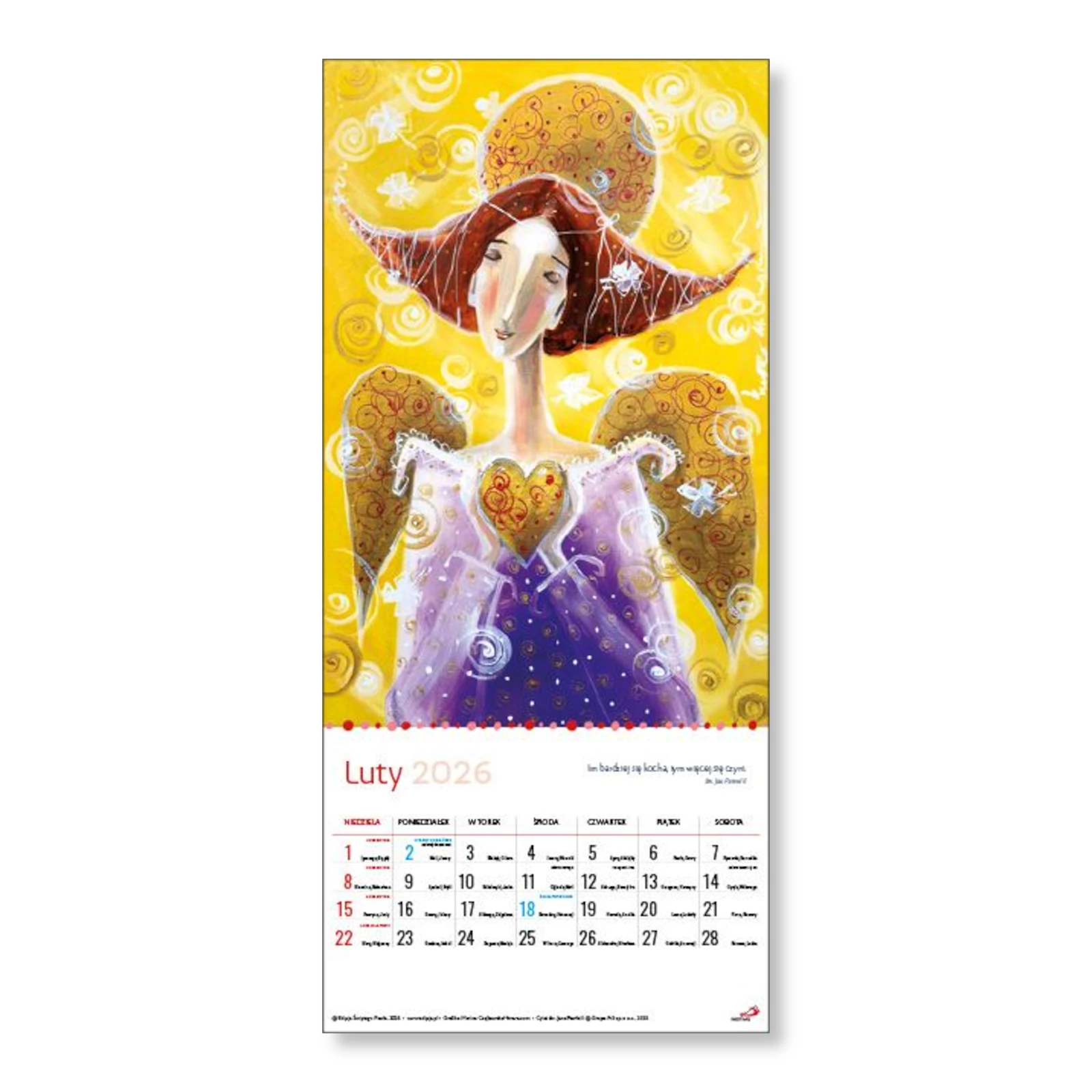 Szukasz anielskiej opieki w 2026 roku? Powieś na ścianie kalendarz zilustrowany pięknymi wizerunkami aniołów, który będzie codziennie przypominał Ci o anielskiej obecności! Dzięki niemu dobrze zaplanujesz czas, a także zyskasz poczucie ładu, harmonii i kontroli.
