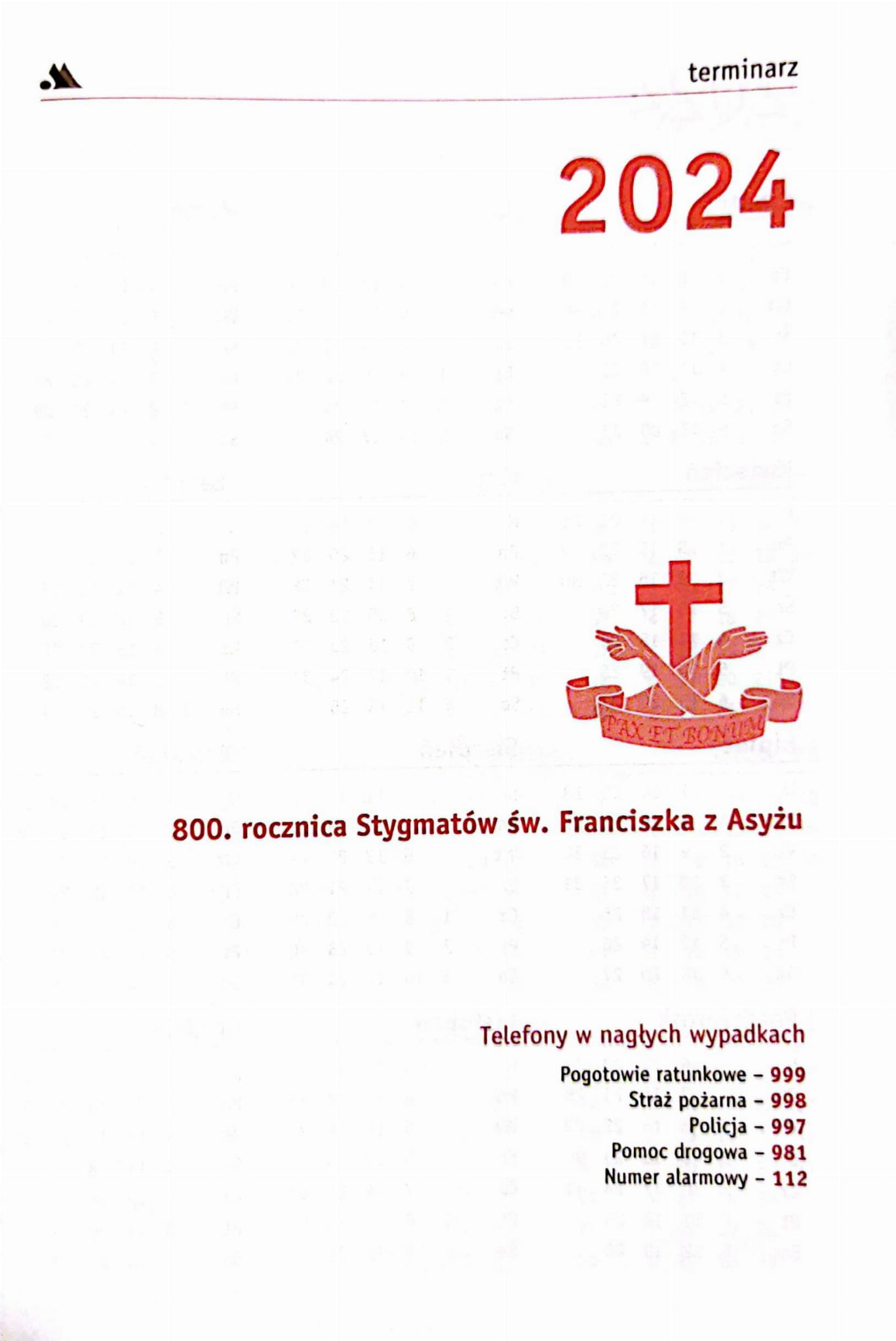 Terminarz zawiera teksty Ewangelii na każdy dzień roku wraz z komentarzami św. Jana Pawła II. W kalendarium zaznaczone są uroczystości, święta i wspomnienia liturgiczne oraz tygodnie brewiarzowe. Na czas Wielkiego Postu proponujemy nabożeństwo pasyjne, krzewione przez Zgromadzenie Pasjonistów, czyli Zegar Męki Pańskiej.