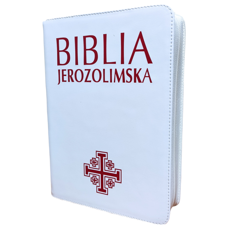 Biblia Jerozolimska. Paginatory. Oprawa skórzana z kolorowym nadrukiem biała. Wydawnictwo Pallottinum