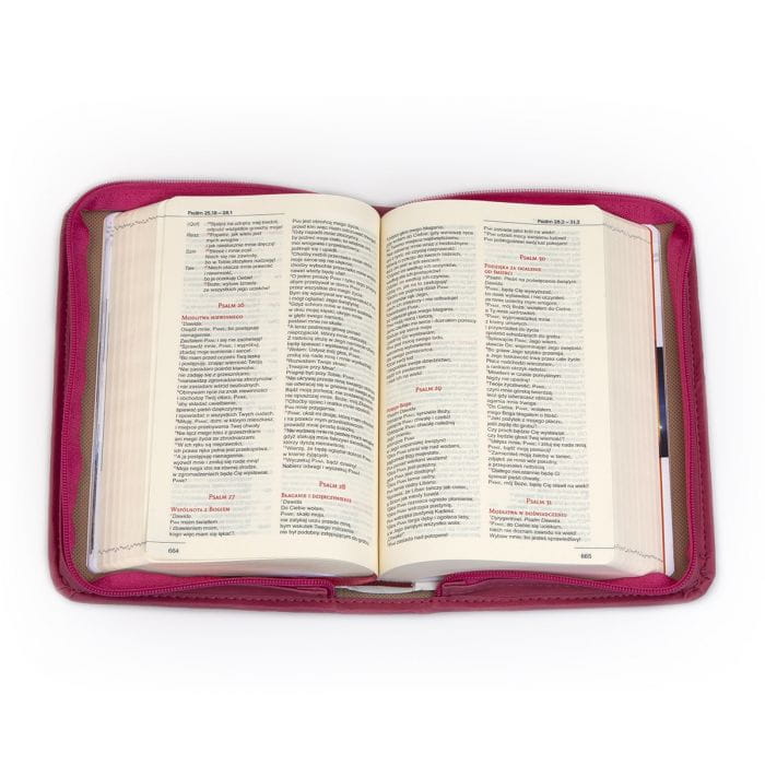 Oprawa na Biblię pozwoli zachować ją w perfekcyjnym stanie przez lata. Oprawa wykonana z wysokiej jakości skóry ekologicznej, zapinana na suwak, doskonale chroni przed zabrudzeniem, uszkodzeniem i wilgocią. Idealnie dopasowana do formatu wydawanej przez Edycję Świętego Pawła Biblii z kolorową wkładką. Front ozdobiony gustownym tłoczeniem.
