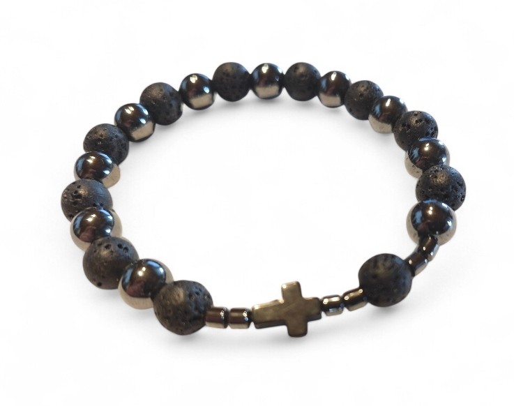 Bransoletka różaniec hematyt lawa wulkaniczna. Dziesiątka.