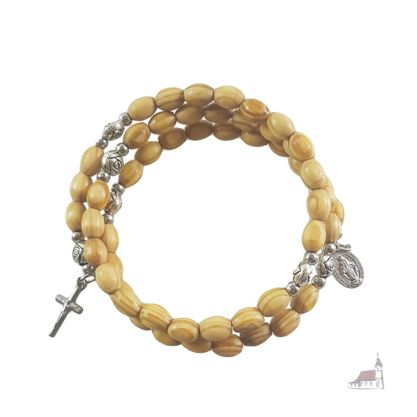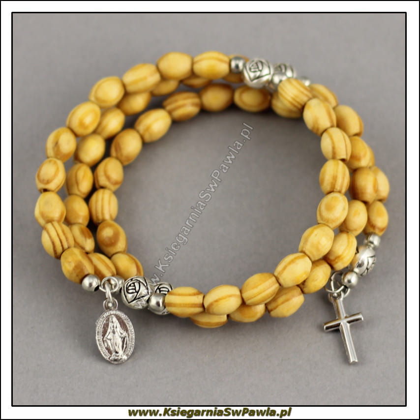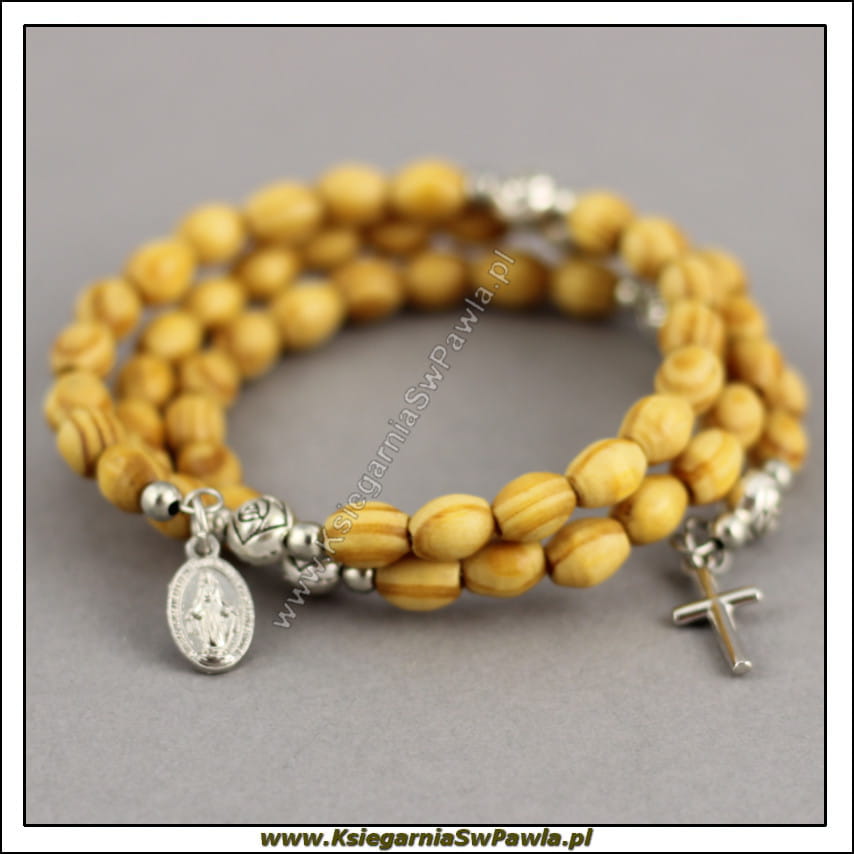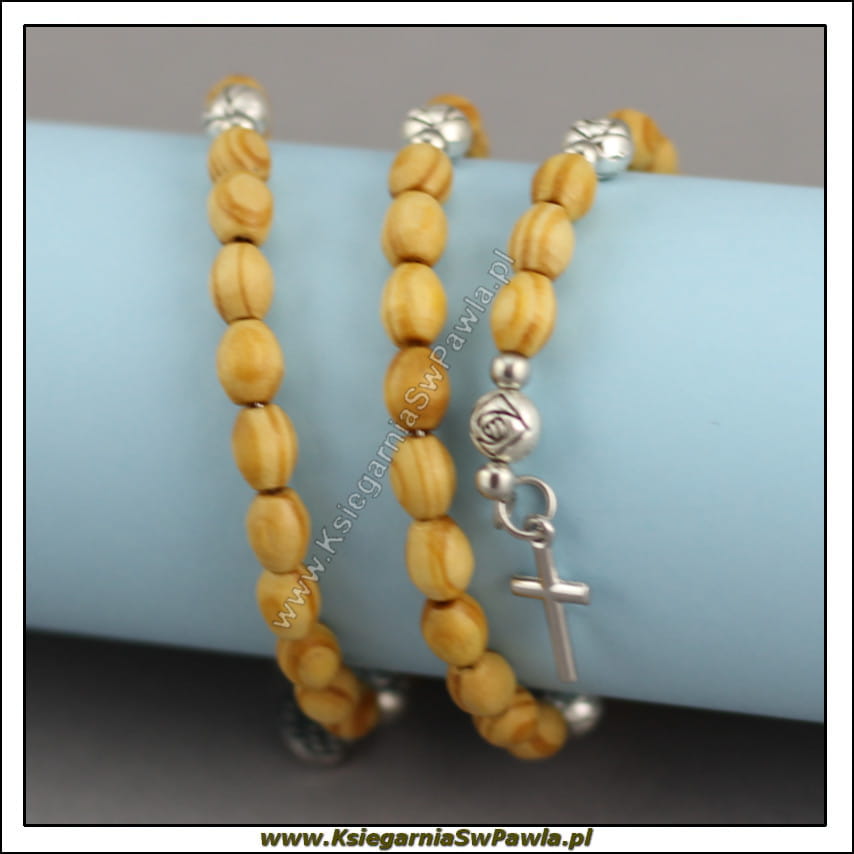 Bransoletka. Różaniec drewniany. Krzyż prosty