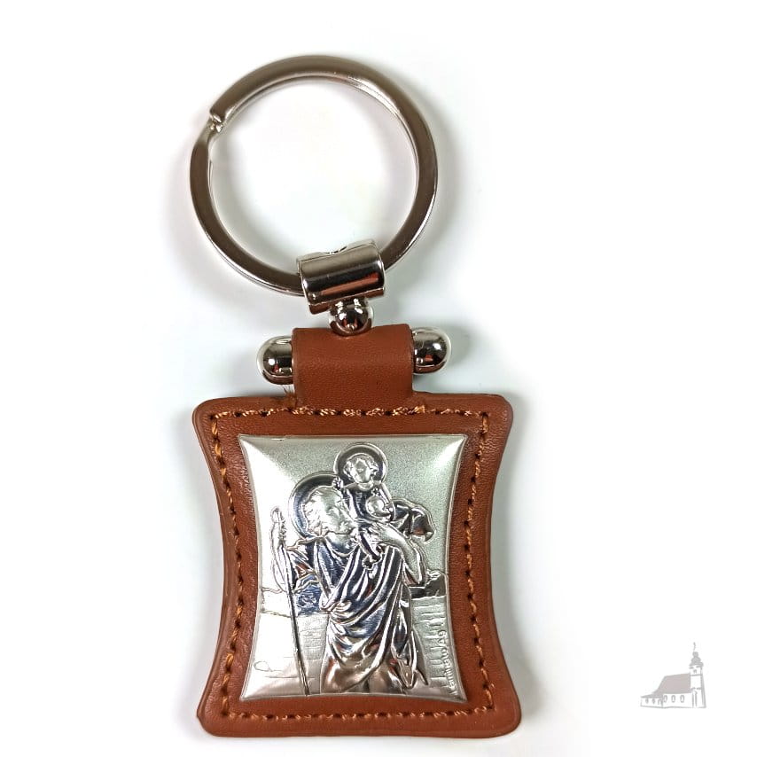 Brelok do samochodu św Krzysztof srebrny brązowy