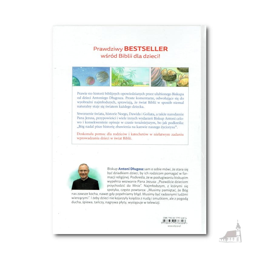 Prawie sto historii biblijnych opowiedzianych przez ulubionego Biskupa od dzieci Antoniego Długosza. Proste komentarze, odwołujące się do wyobraźni najmłodszych, sprawiają, że świat Biblii w sposób niemal naturalny staje się światem każdego dziecka.