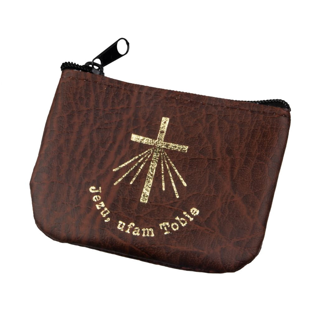 Etui na różaniec, zamykane na zamek z napisem Jezu Ufam Tobie