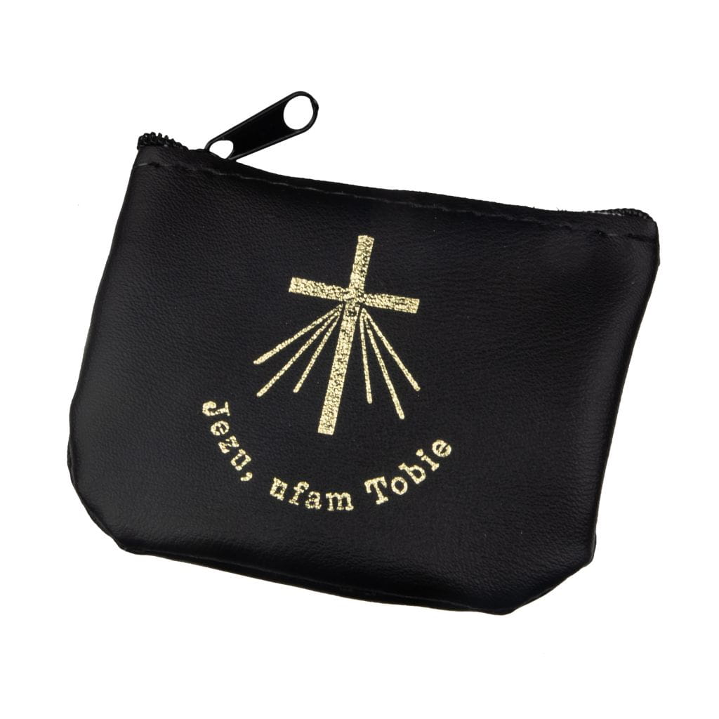 Etui na różaniec, zamykane na zamek z napisem Jezu Ufam Tobie
