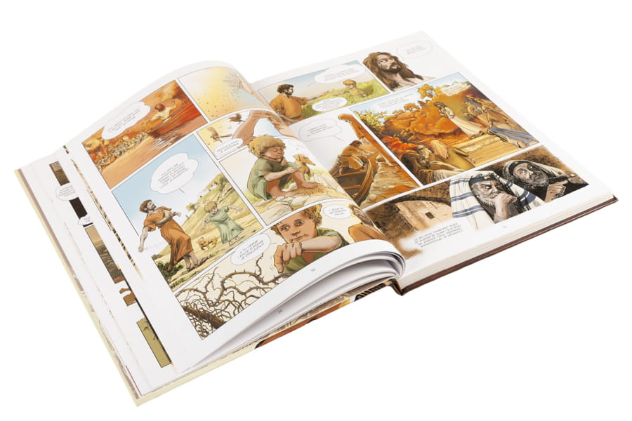 Dzięki czteroletniej pracy Oliviera Driona, ilustratora i autora tego komiksu, możemy zobaczyć to, co wiele oczu chciało widzieć, i usłyszeć to, czego wiele uszu chciało słuchać… Oto wizjonerski sposób na przedstawienie Ewangelii, przybliżający jej przełomowe momenty: od narodzin Jezusa, poprzez Jego dzieciństwo i głoszenie słowa, aż po mękę i chwalebne zmartwychwstanie. Dynamiczne ilustracje Driona odtwarzają postaci w najdrobniejszych szczegółach, mistrzowsko pokazując grę spojrzeń między Jezusem i Jego rozmówcami.