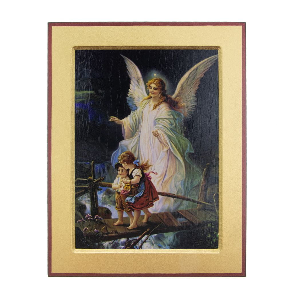 Klasyka tematyki religijnej Anioł Stróż z dziećmi na kładce to piękna stara kopia obrazu malarza Hansa Zatzki (1859–1945), który to wiedeński artysta malował wiele obrazów religijnych których kopie trafiały zarówno do kościołów jak i pod strzechy. Ten obraz religijny na desce namalowany został przez niemieckiego kopistę R. Greinera w latach ok 70 XX w.