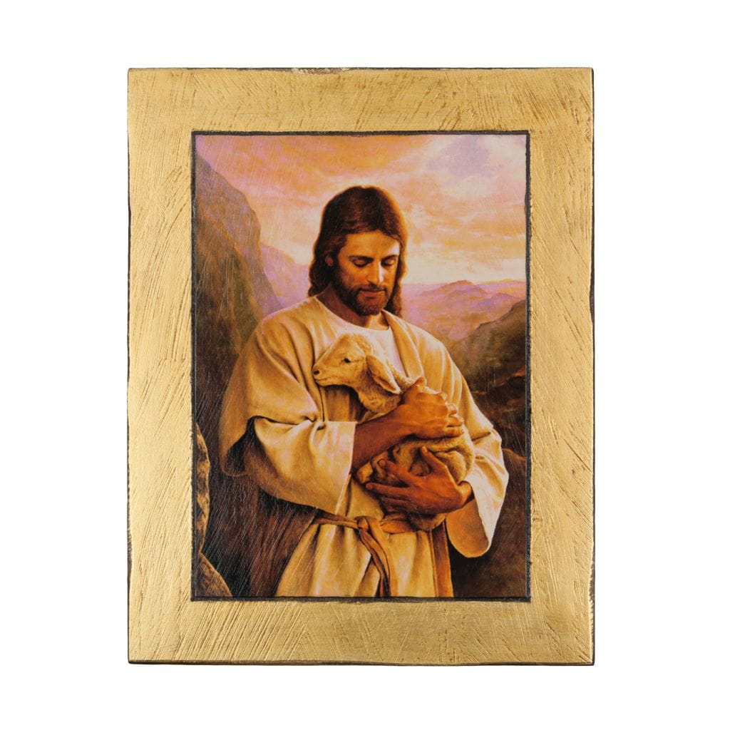 Ikona Chrystusa Dobrego Pasterza wykonana na drewnie.