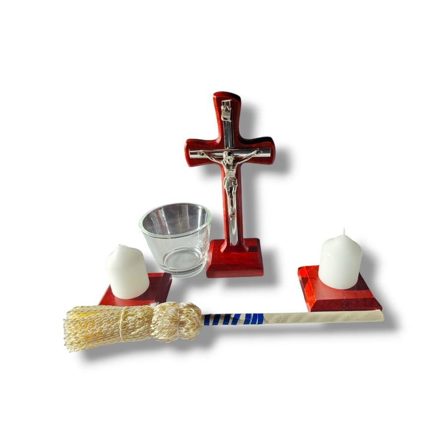 Zestaw kolędowy, drewniany. Kolor wiśniowy.