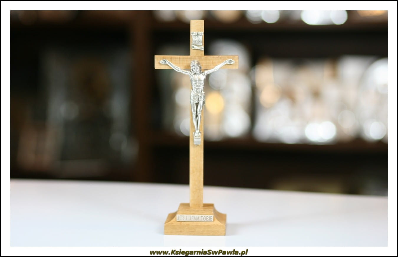 Krzyż drewniany, jasny. "Jezu ufam Tobie"