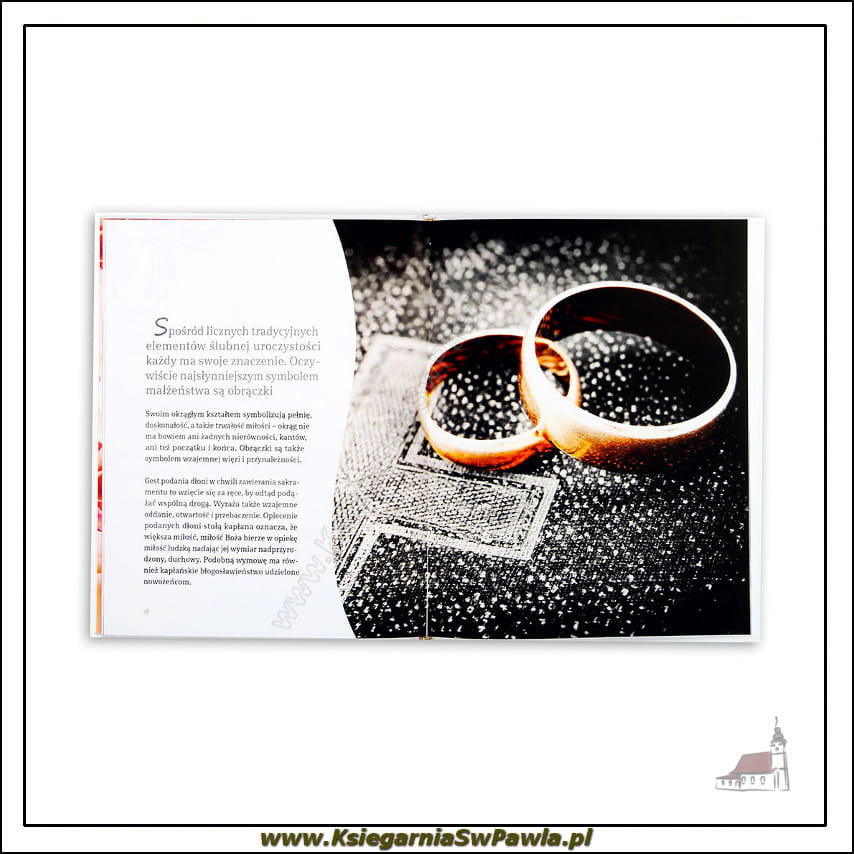 Pośród efektownych ilustracji, życzeń, błogosławieństwa rodziców i licznych cytatów, książka zawiera też m.in. opis ślubnych symboli i tradycji.