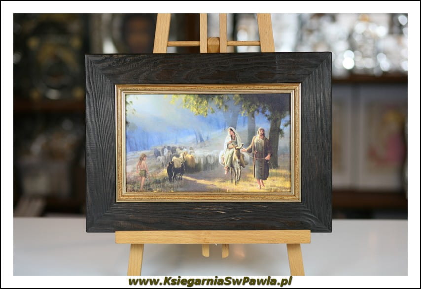 Obraz przedstawiający Maryję na osiołku. Obraz w pojedynczej ramie.