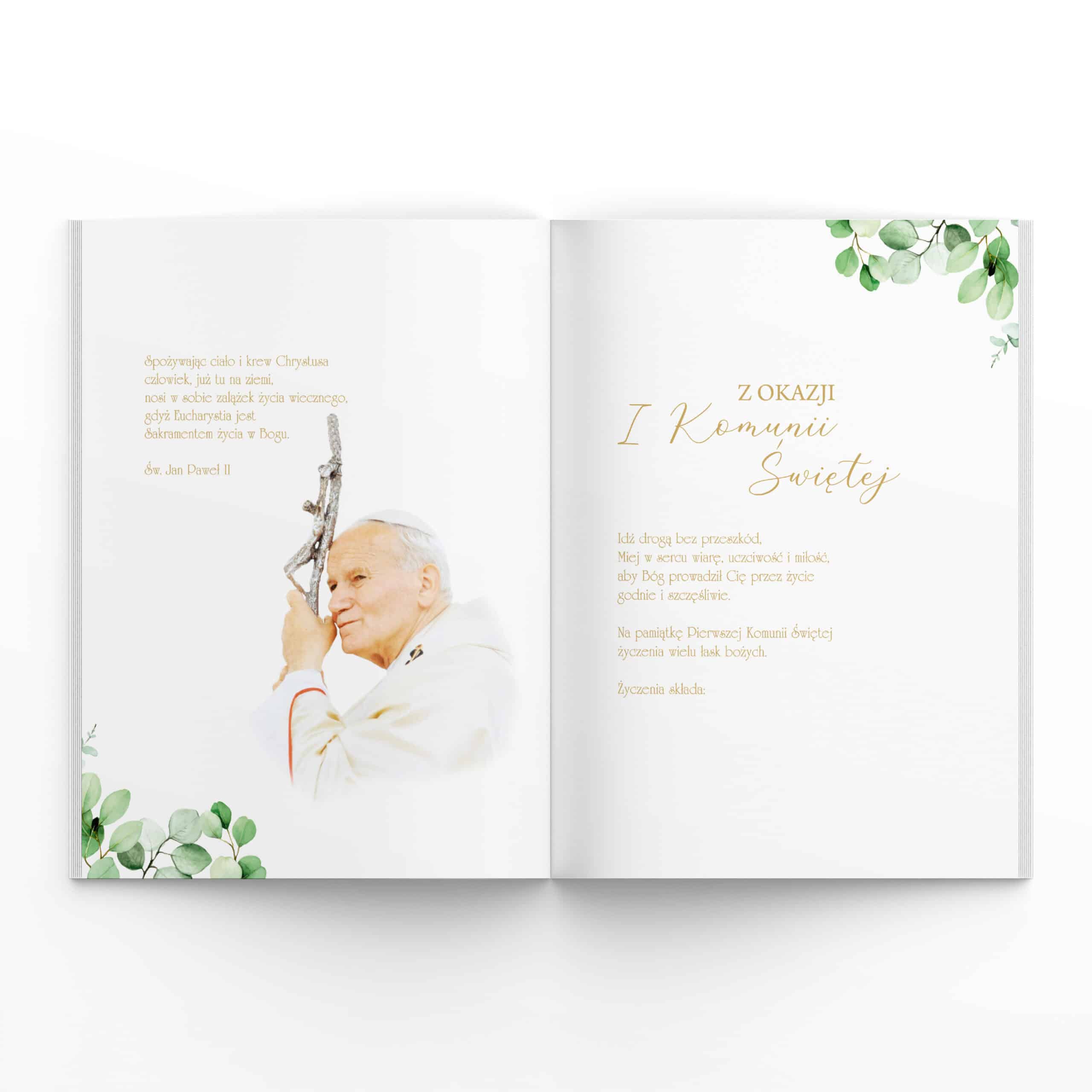 - Koperta – dokładana dodatkowo na drobne pamiątki lub pieniądze