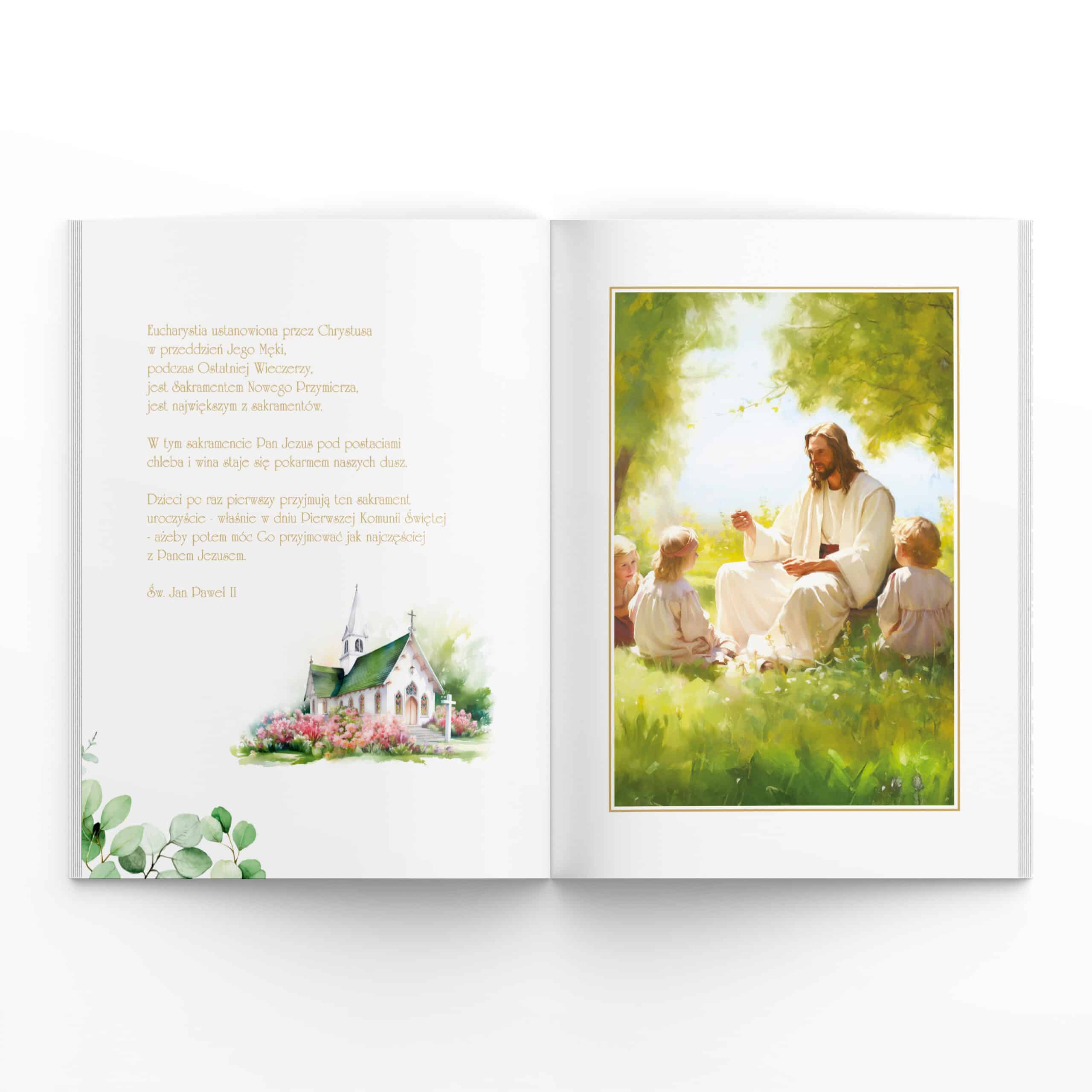 Pamiątka Pierwszej Komunii Od Matki Chrzestnej IHS złocenia A5