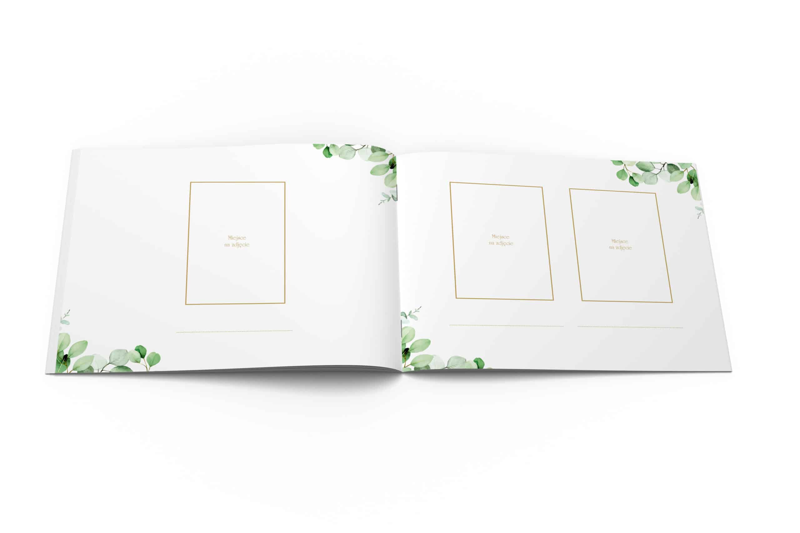 Wewnątrz albumu znajdują się dedykowane miejsca na zdjęcia z rodziną oraz specjalne strony do wpisów gości, dzięki którym można zachować najważniejsze wspomnienia i emocje. Dodatkowo w środku umieszczona została koperta, która może posłużyć do przechowywania drobnych pamiątek lub wręczenia banknotów.