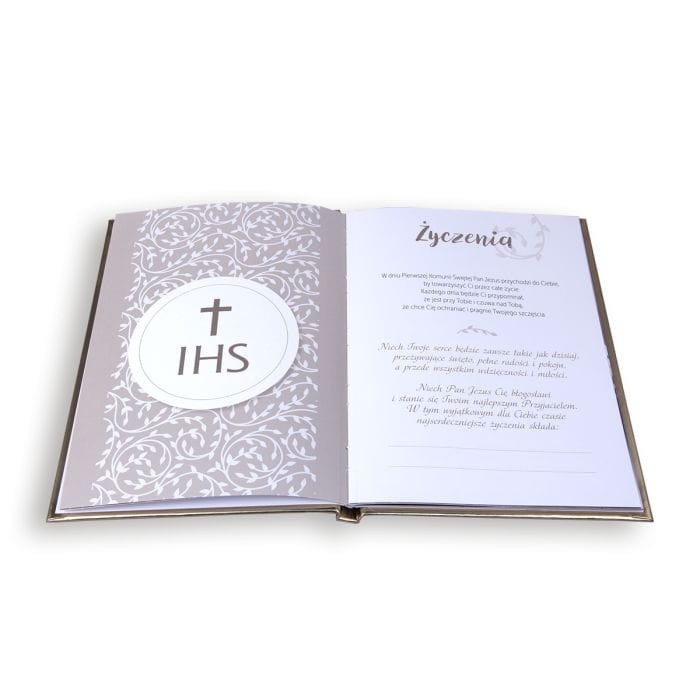 W dniu Pierwszej Komunii Świętej Pan Jezus przychodzi do dziecka, by towarzyszyć mu przez całe życie. Niniejszy album to niezastąpiona pamiątka tego wyjątkowego dnia. Zapełniony informacjami dotyczącymi uroczystości, z upływem czasu będzie nabierał niezwykłej wartości – nie tej materialnej, ale emocjonalnej, przepełnionej ciepłymi i radosnymi wspomnieniami.