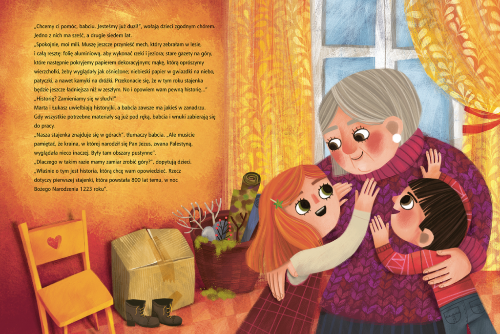 Sympatyczne rodzeństwo, Marta i Łukasz, jak wiele innych dzieci w tym czasie, ma przed sobą nie lada wyzwanie: będzie przygotowywać bożonarodzeniową szopkę. W wykonaniu zadania wspierać je będzie babcia Ala. To właśnie ona przechowuje figurki, grotę i wszystkie inne dekoracje potrzebne do wykonania stajenki. Zanim jednak prace ruszą pełną parą, starsza pani postanawia opowiedzieć wnukom niezwykłą historię pierwszej szopki, którą w 1223 roku stworzył Święty Franciszek z Asyżu. Łukasz i Marta są zachwyceni tą opowieścią i postanawiają dać z siebie naprawdę wszystko, aby i w ich stajence Dzieciątko Jezus mogło znaleźć dom w nadchodzące Boże Narodzenie.
