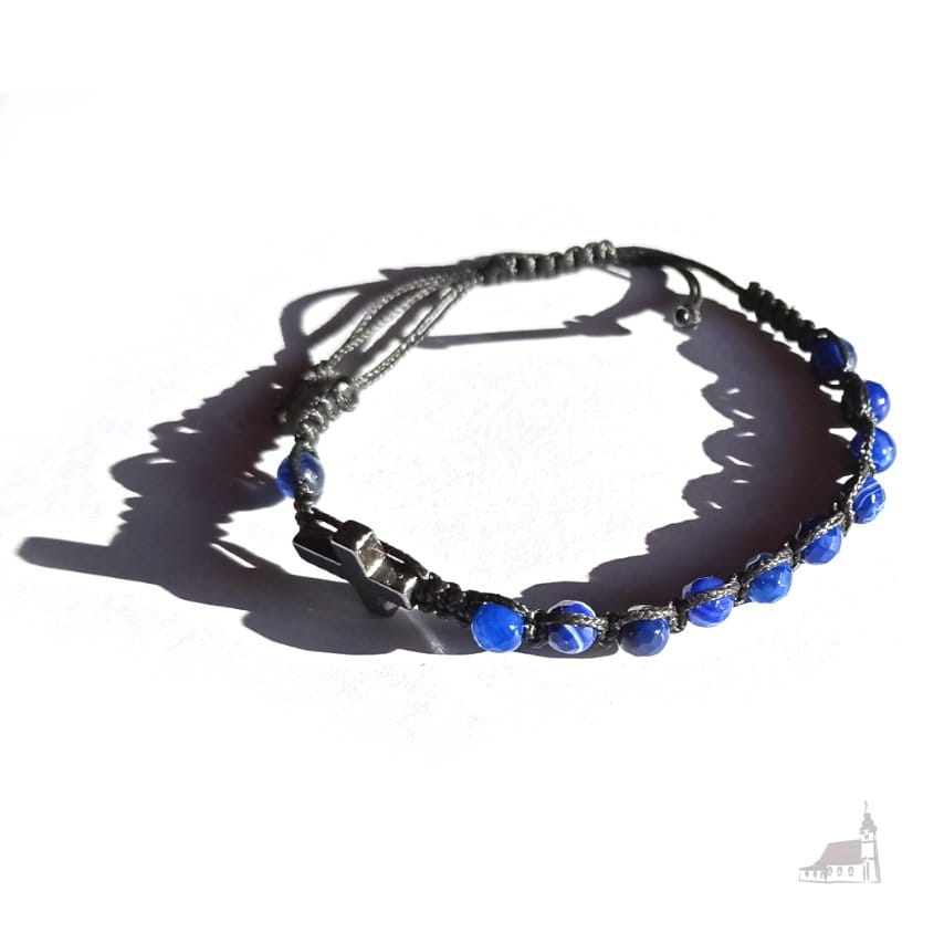 Różaniec bransoletka, dziesiątka na sznurku. Kamień niebieski