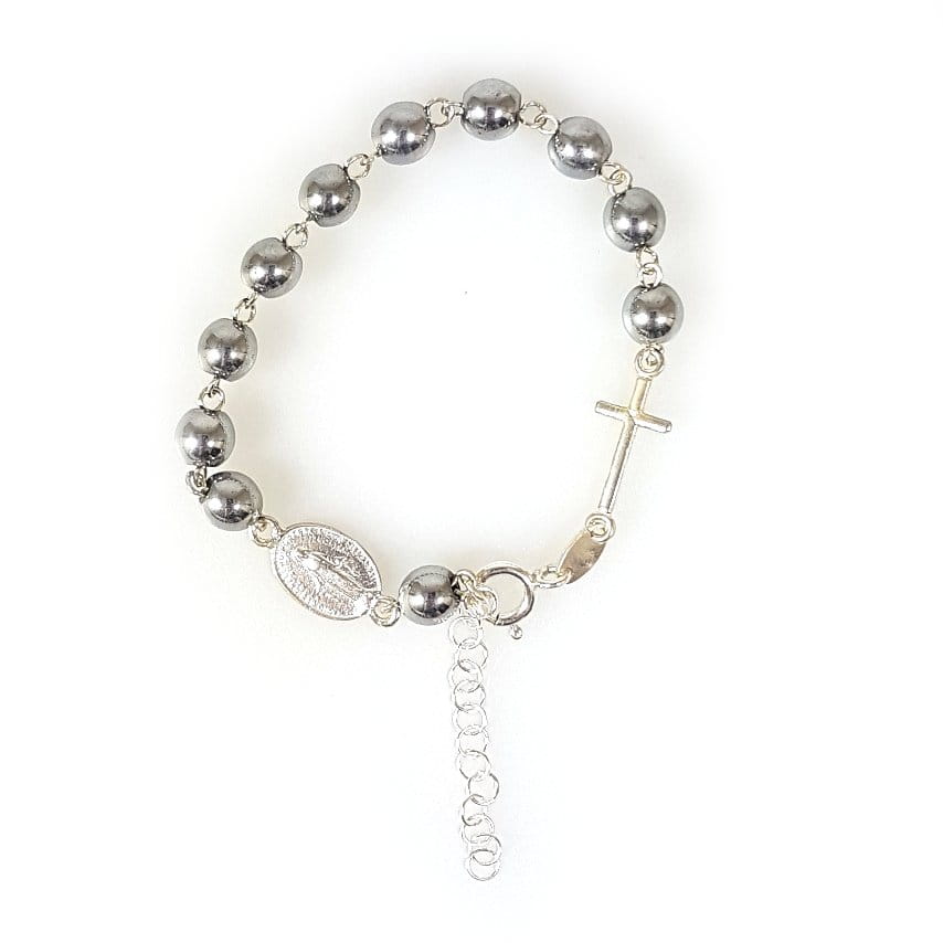 Różaniec bransoletka, dziesiątka. Hematyt w kolorze srebrnym