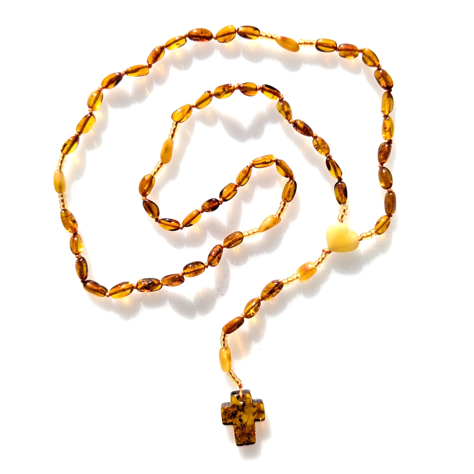 Zastosowanie bursztynu w różańcu gwarantuje niepowtarzalność oraz ciepło jakiego nie uzyskamy stosując kamienie naturalne czy plastik.