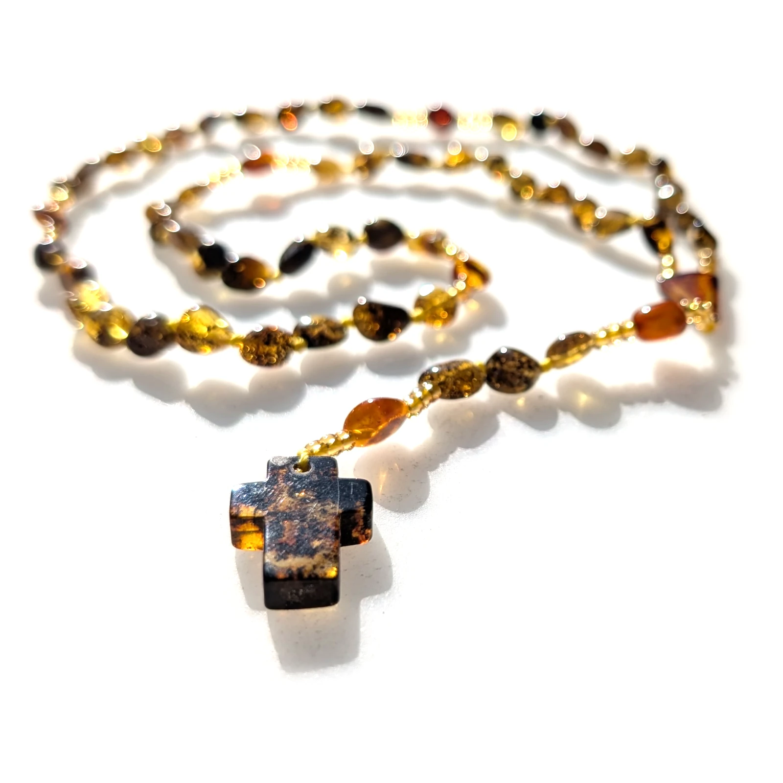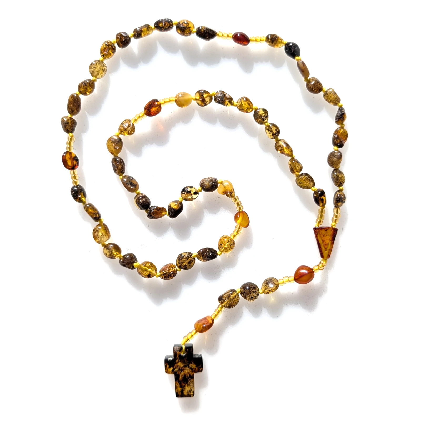Zastosowanie bursztynu w różańcu gwarantuje niepowtarzalność oraz ciepło jakiego nie uzyskamy stosując kamienie naturalne czy plastik.