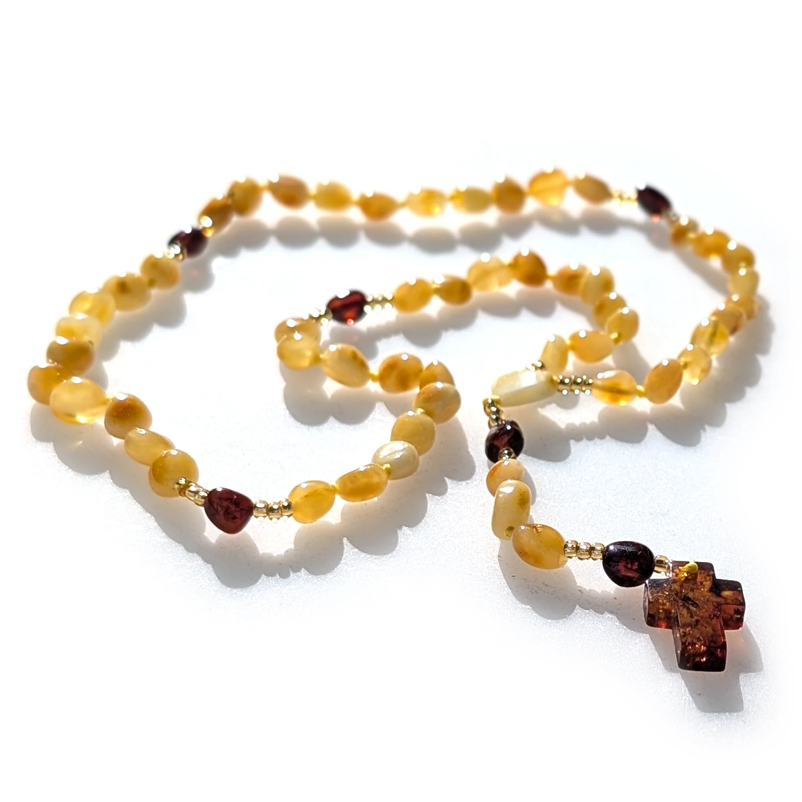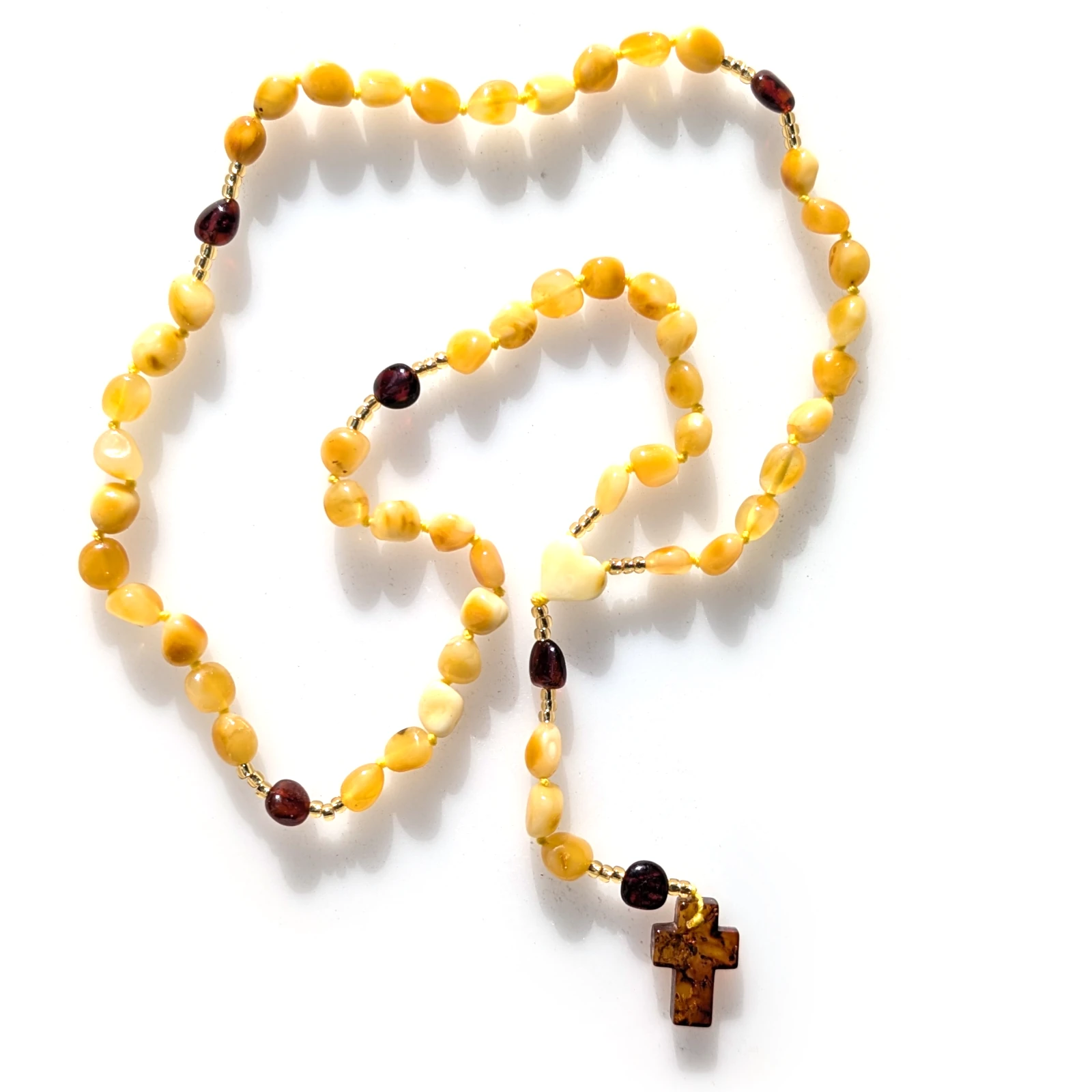 Zastosowanie bursztynu w różańcu gwarantuje niepowtarzalność oraz ciepło jakiego nie uzyskamy stosując kamienie naturalne czy plastik.