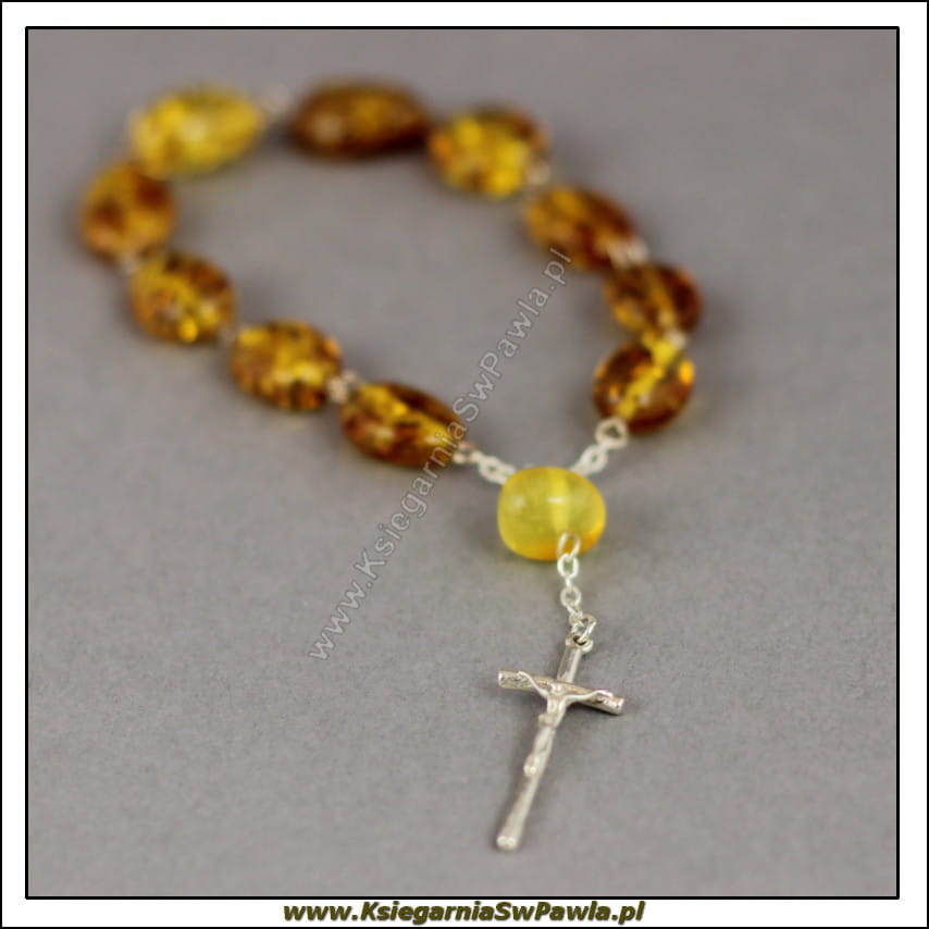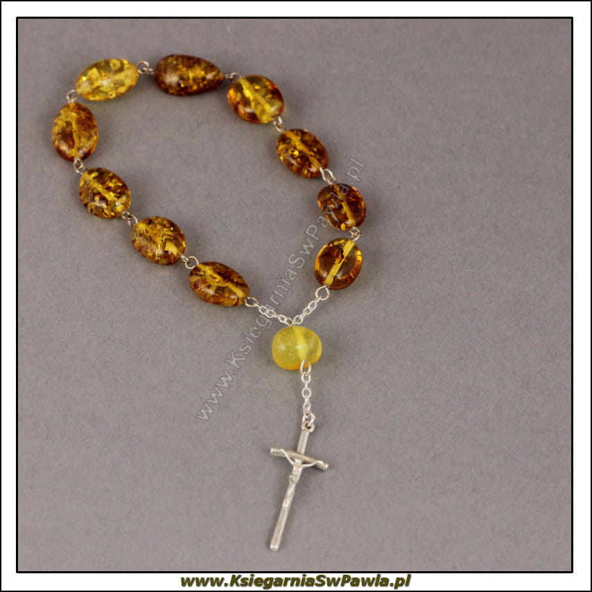 Różaniec bursztynowy. Dziesiątka łączony srebrem