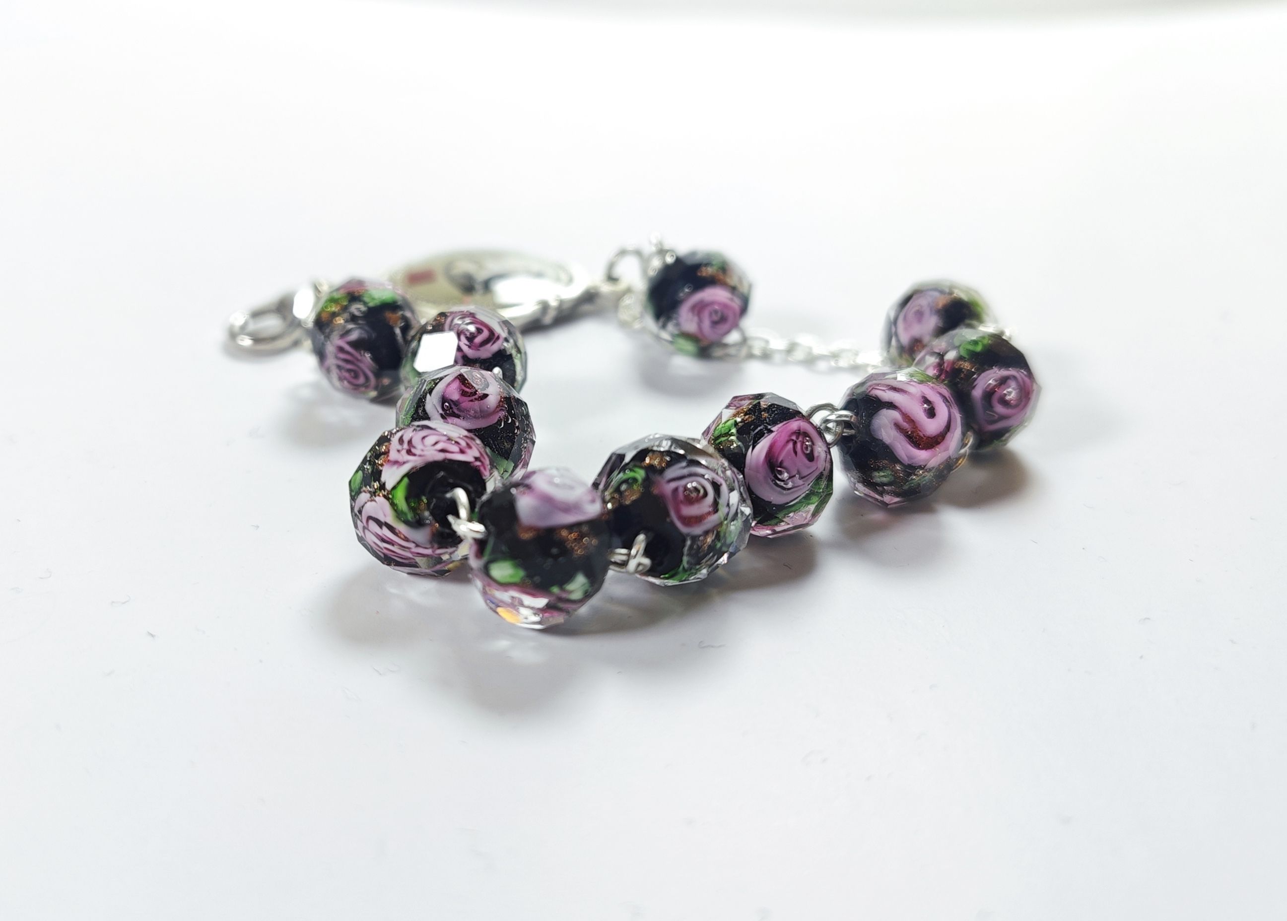Różaniec dziesiątka z relikwią Św Rity z Cascii, szkło weneckie.