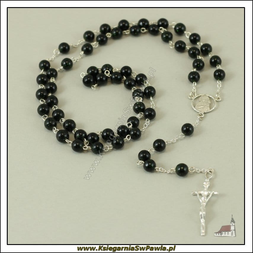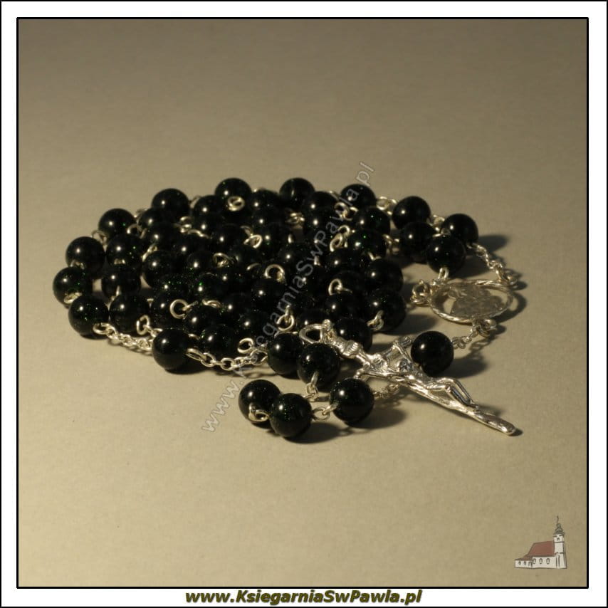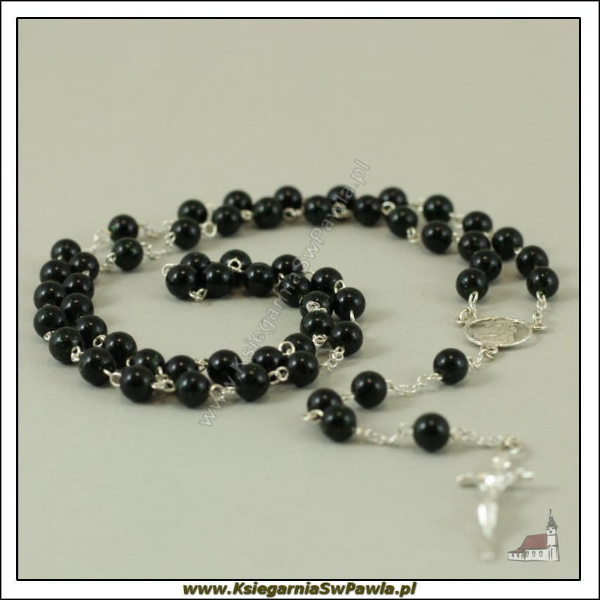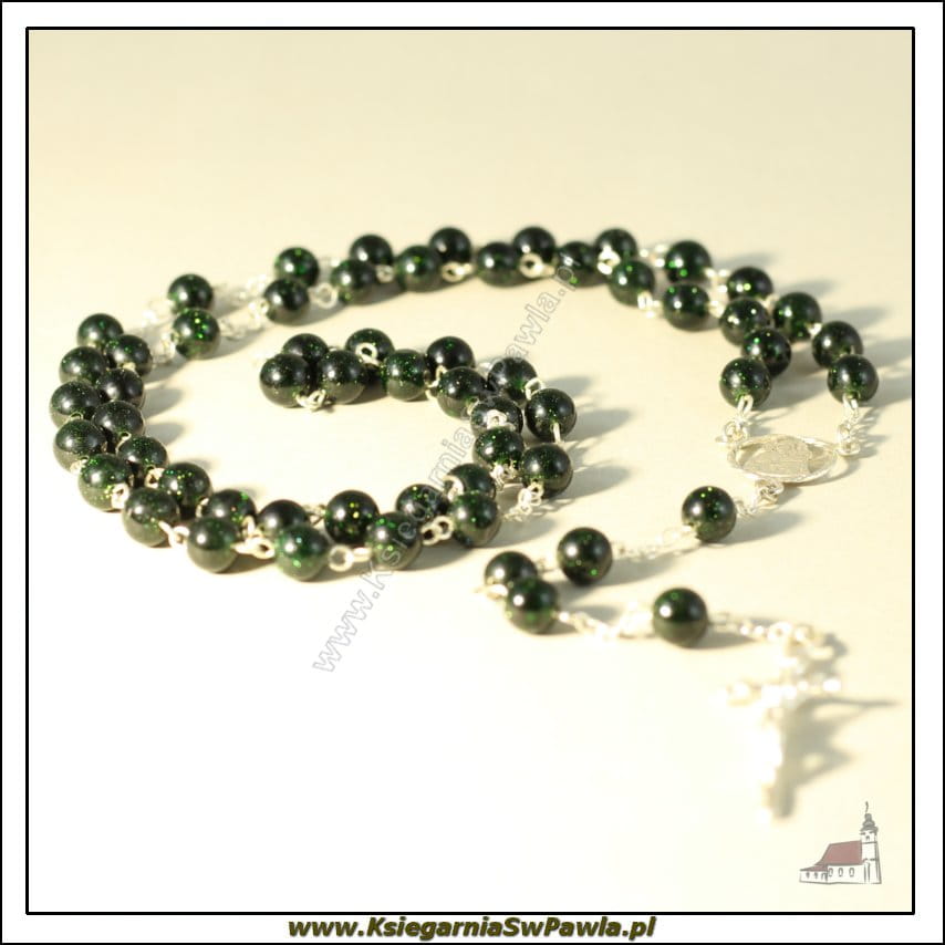 Różaniec szmaragd nilu łączony srebrem. Krzyż papieski