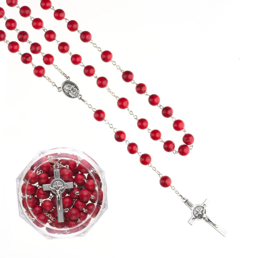 Różaniec z kamienia naturalnego koralin. Łączony metalem.