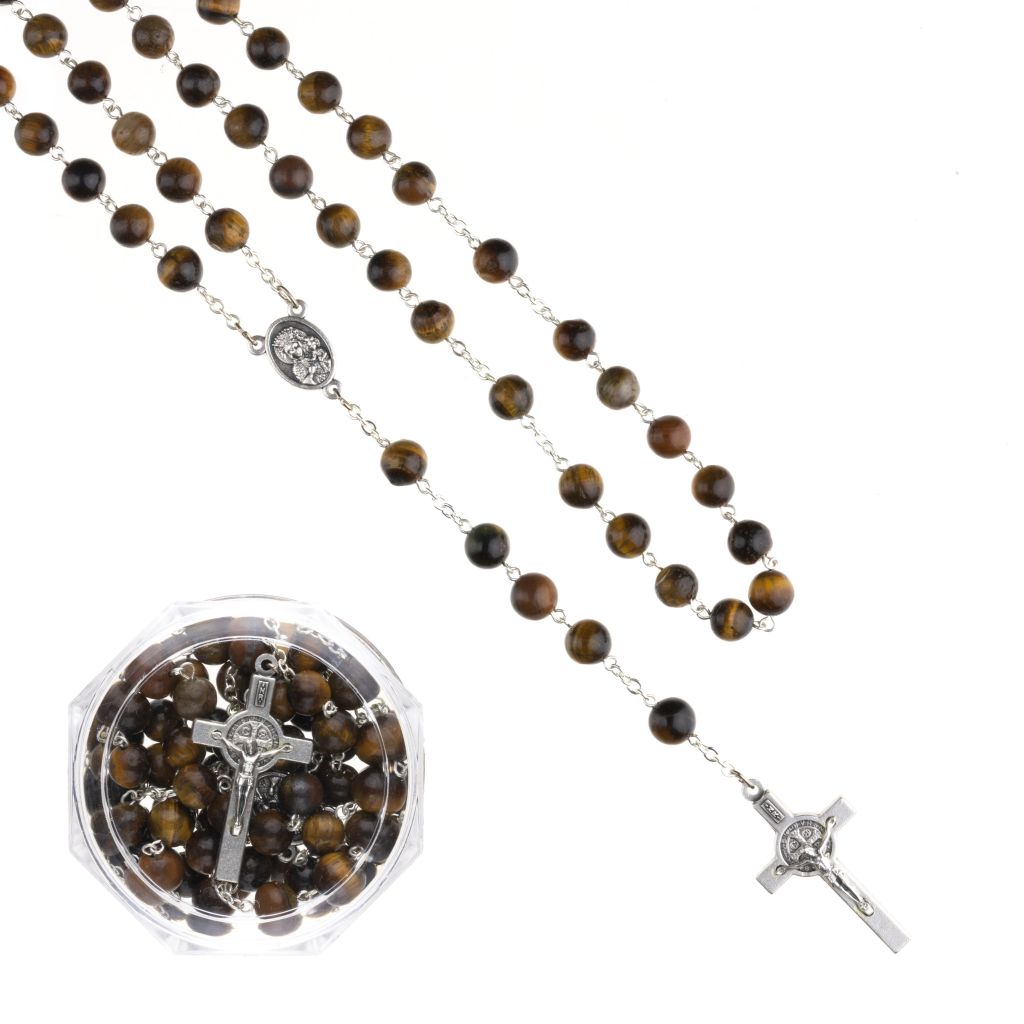 Różaniec z kamienia naturalnego tygrysie oko. Łączony metalem. (1)