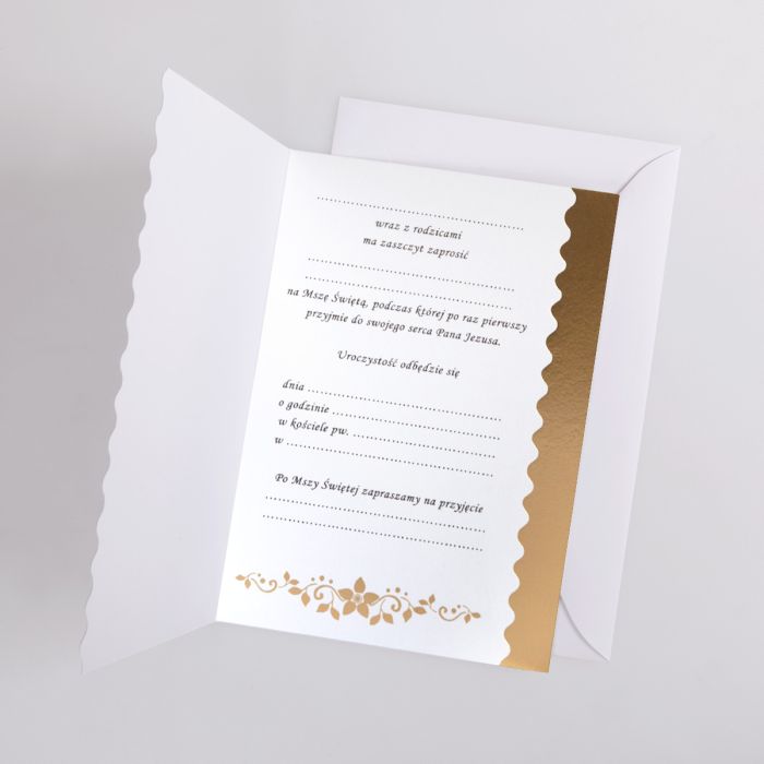 Nie lubisz kartek pełnych przepychu? Te eleganckie zaproszenia z motywem hostii i świecy z pewnością przypadną Ci do gustu! Dzięki nim Twoi goście poczują się wyjątkowi i oczekiwani, a uroczystość nabierze wyjątkowego charakteru!