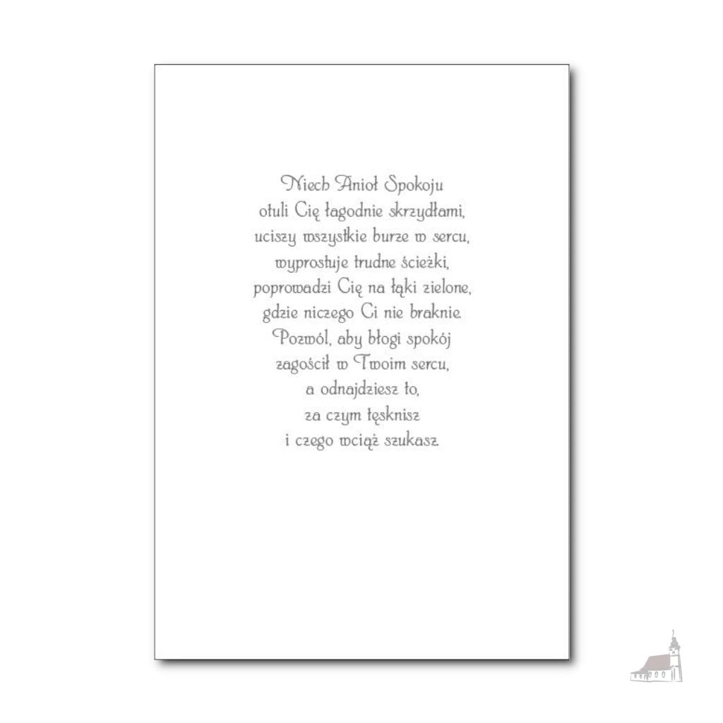 Posyłam Ci Anioła Spokoju. Karnet z kopertą Karnet okolicznościowy pakowany pojedynczo z kopertą w folię.