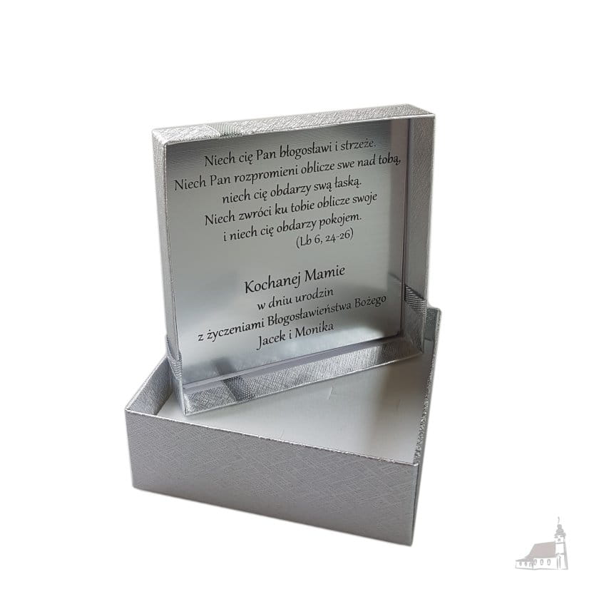 Istnieje możliwość zamówienia pudełka z wklejoną dedykacją w postaci płytki z grawerem.