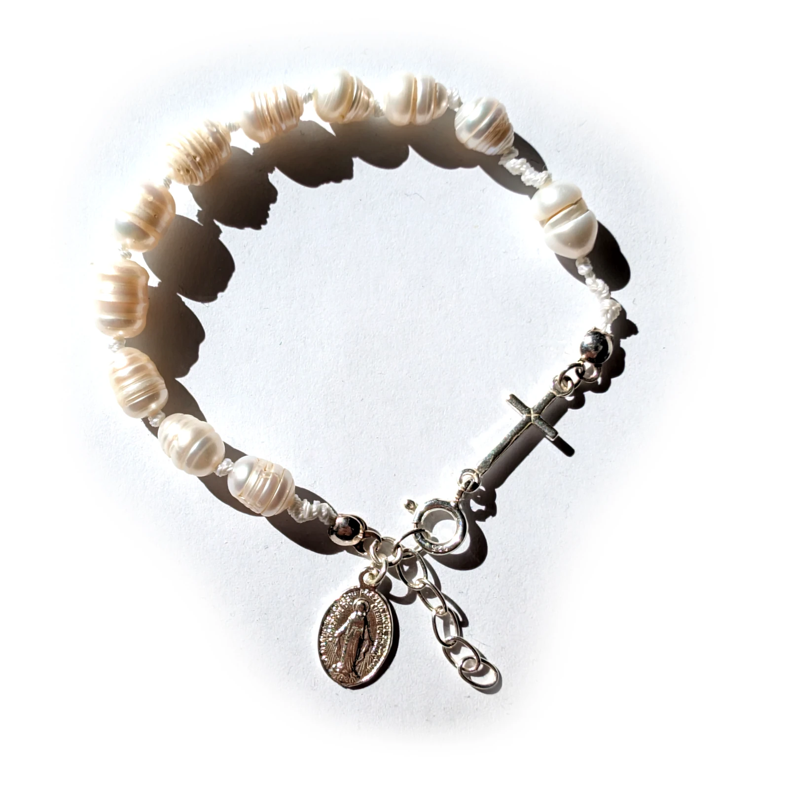 Różaniec dziesiątka w formie bransoletki z pereł.